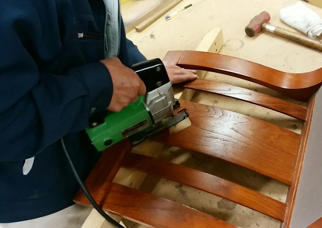 座椅子の背もたれ 『抜き』部分の修繕by tezuka2022年6月16日2022年6月16日 こちらの座椅子は、背もたれに武田菱の抜きが施されていましたが、 長年の愛用で傷が付いたり折れたりしてしまった為、 真ん中の部分を切り菱形に形を変える修繕を行いました。 見た目的にも安全的にも改善されました。 今後もまた長く使用できそうですね! 武田菱の部分に傷が付いて折れてしまいそうです 中の菱形の部分が折れて危ない状態です 折れてしまった部分をカットして整えて色を塗ります すっきりとキレイな菱形になりました タグ:座椅子の修繕 コメントを残す コメントをキャンセルメールアドレスが公開されることはありません。 ※ が付いている欄は必須項目です名前 ※ メール ※ サイト コメント ※ 次回のコメントで使用するためブラウザーに自分の名前、メールアドレス、サイトを保存する。