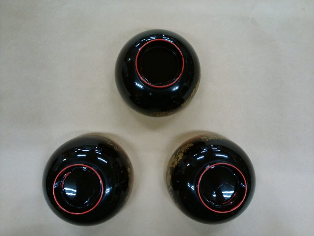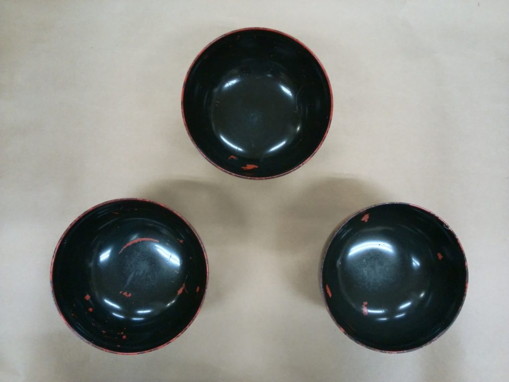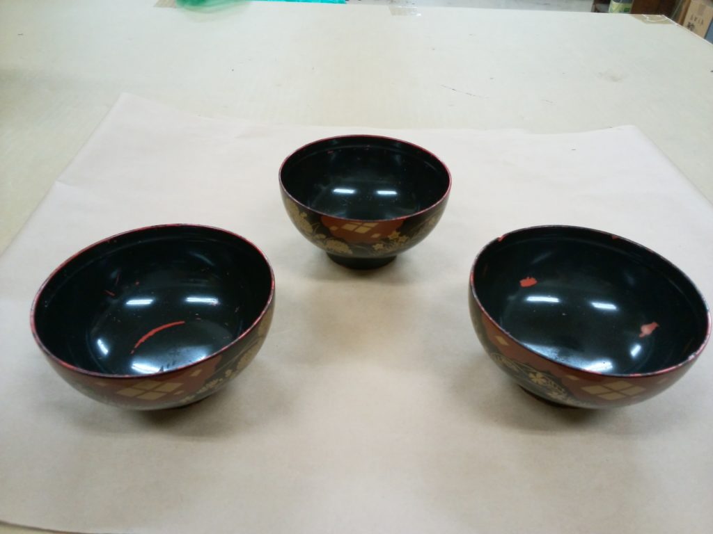 いずれも良い漆器ですが、だいぶ古くなり一部の漆塗りが剥げてしまっています。
