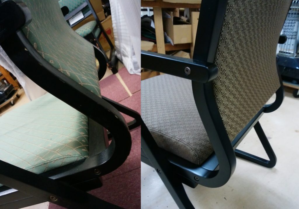 椅子の修理by tezuka2024年4月16日 椅子の修理を承りました。張り替えと塗り直しです。 グリーンからシックなブラウンの布に張り替えました。 塗装が剥げていた部分も塗り直しています。 とても綺麗に修繕されました! 正面 左:修繕前 右:修繕後 ななめ 左:修繕前 右:修繕後 左:修繕前 右:修繕後 タグ:修理修繕塗り直し家具の修理椅子の修理 コメントを残す コメントをキャンセルメールアドレスが公開されることはありません。 ※ が付いている欄は必須項目です名前 ※ メール ※ サイト コメント ※ 次回のコメントで使用するためブラウザーに自分の名前、メールアドレス、サイトを保存する。