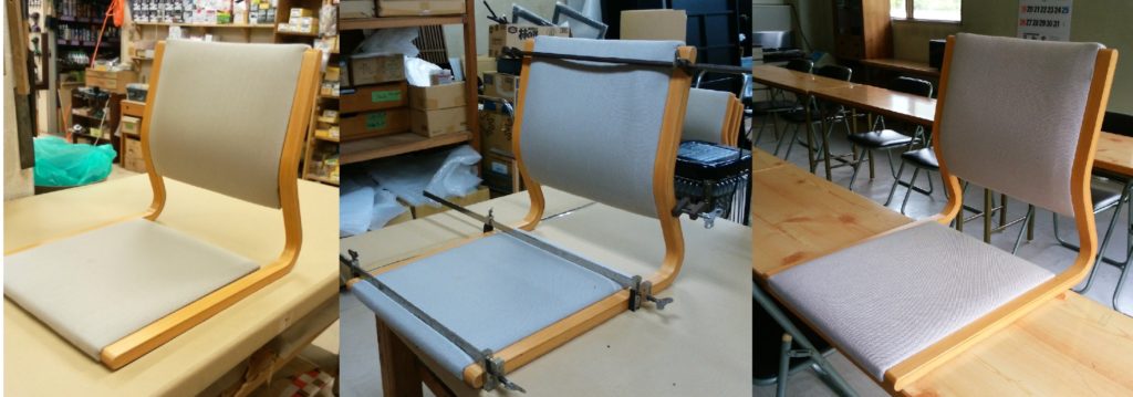 左:修繕前 中央:修理中 今回はこうした器具を使いました 右:修繕後